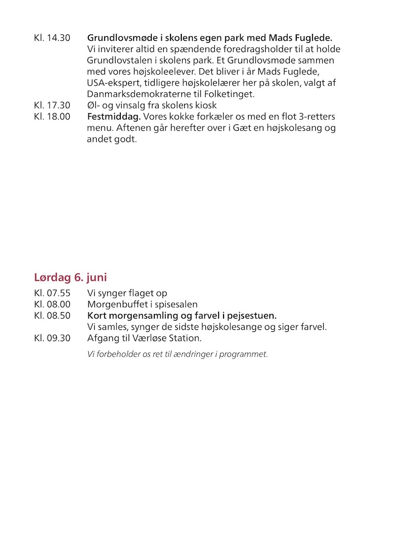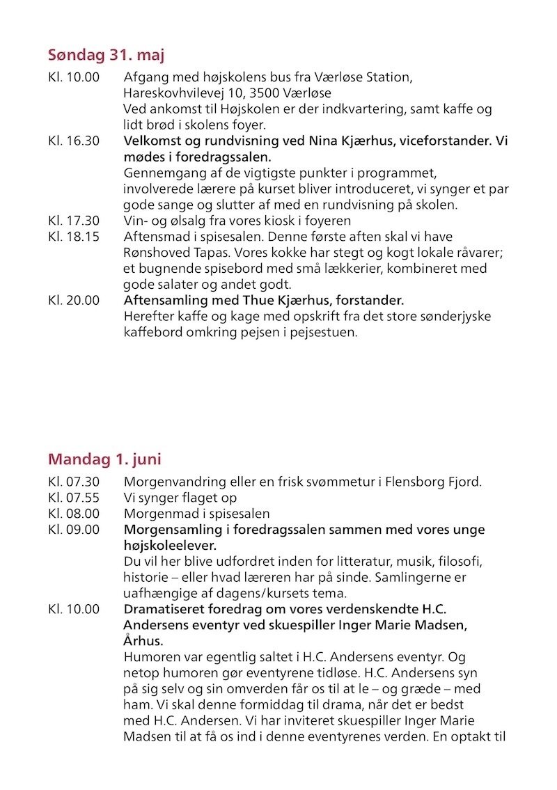 Prisen inkluderer: Bustransport fra Værløse til og fra Højskolen, ophold med helpension og aktiviteter som nævnt i programmet.