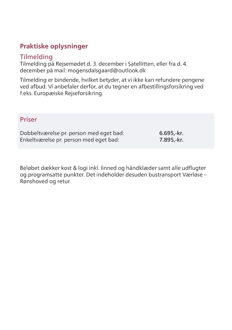 Tilmelding på rejsemødet eller på mail den 4. december til mogensdalsgaard@outlook.dk eller tlf. 2127 6212