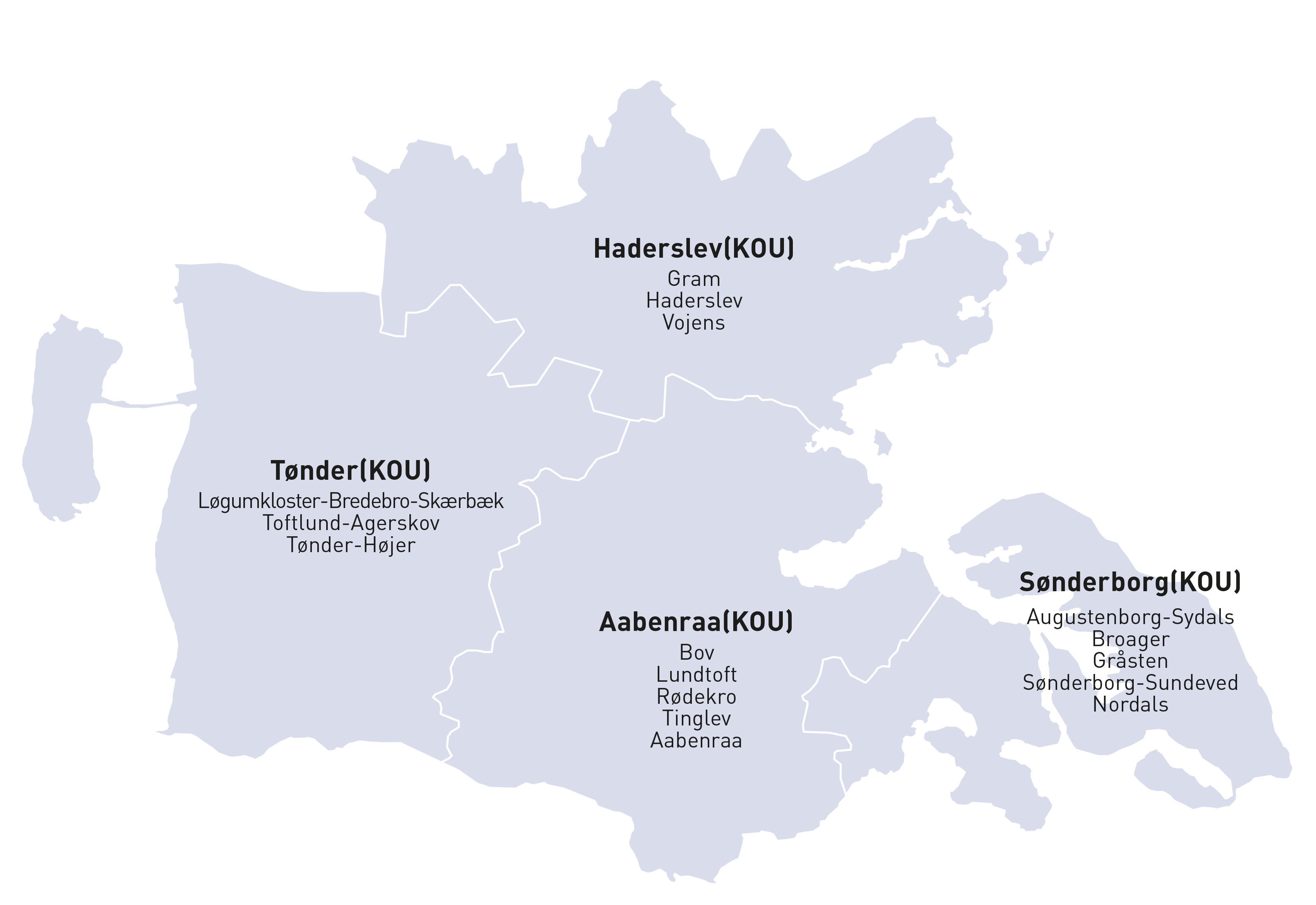 Distrikt 5 omfatter kommunerne Haderslev, Sønderborg, Tønder og Aabenraa med i alt 16 lokalafdelinger.