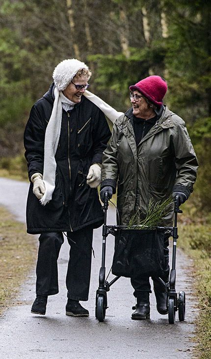 ”Vi er begge lidt gangbesværede, og det er en stor fordel, at vi bevæger os i samme tempo. Sys er mere naturmenneske, end jeg er. Når det er dårligt vejr, så hiver hun mig med."