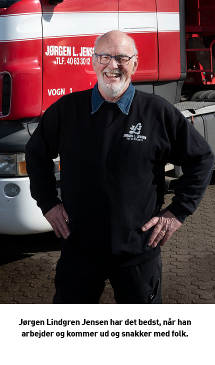 ”At komme ud og snakke med folk er dejligt. Jeg har det bedst, når jeg arbejder. Jeg ved ikke, hvad jeg ellers skulle lave. Jeg kan lide at snakke med kranførerne og de andre vognmænd,” fortæller Jørgen Lindgren Jensen, som ofte begynder arbejdet kl. 4.