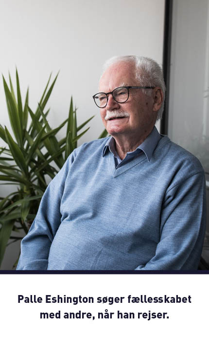 - Når man rejser sammen med andre, der også rejser alene, så er alle indstillede på at være åbne og blande sig med de andre. Modsat kan man føle sig isoleret og ensom, når man rejser alene sammen med en masse ægtepar, som har en tendens til at lukke sig om hinandens selskab, fortæller 75-årige Palle Eshington.