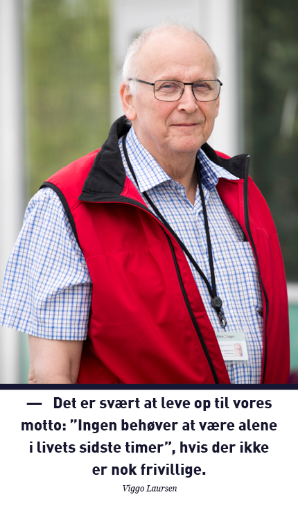 – Det gjorde ondt på mig. Det er svært at leve op til vores motto: ”Ingen behøver at være alene i livets sidste timer”, hvis der ikke er nok frivillige, siger han.