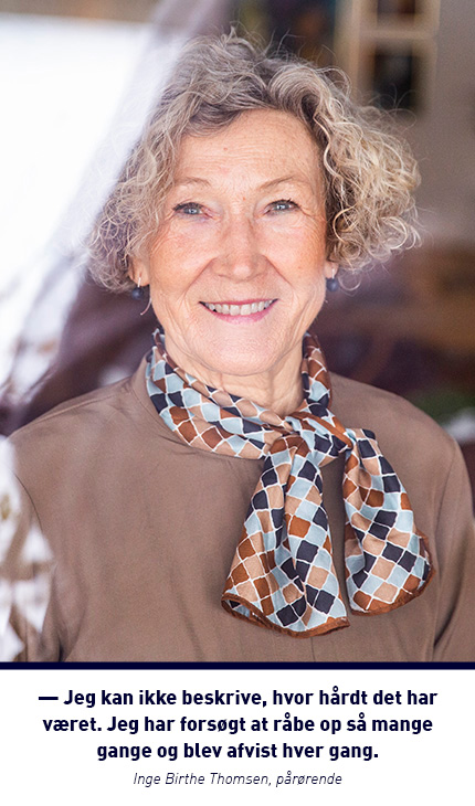 Og for alle de pårørende, der måske ikke har overskud og energi til at tage kampen op i lige så høj grad som Inge Birthe, er det i dag meget svært at blive lyttet til.
