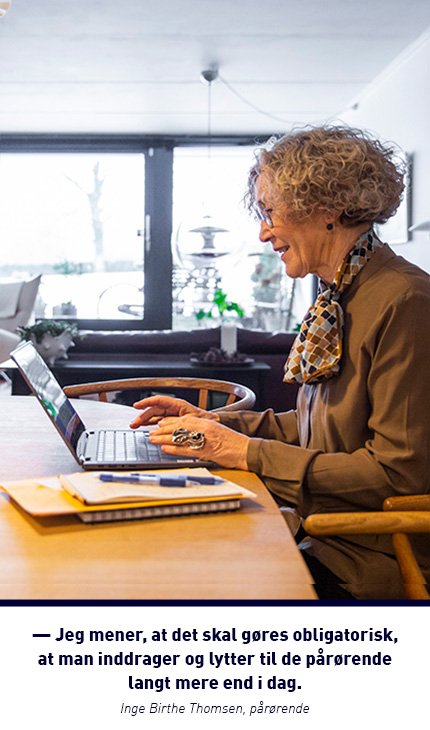 Inge Birthe mener, at det bør være obligatorisk at inddrage pårørende, når mennesker kommer på plejehjem.