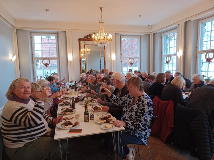 Vi fik Ca. 2 timer fri til at gå rundt i byen, men det er ikke nok, hvis man ville se det hele. Vi havde heldigvis tørvejr, så det var fint at gå rundt i de stenbrolagte gader. Vi kørte til Aabenraa kl. 16 og fik på en rasteplads udleveret sandwich fra Nyemans Bageri og øl/ vand, som mange spiste i bussen, da hjemturen tog lidt længere tid på grund af vejret og fyraftenstrafik.