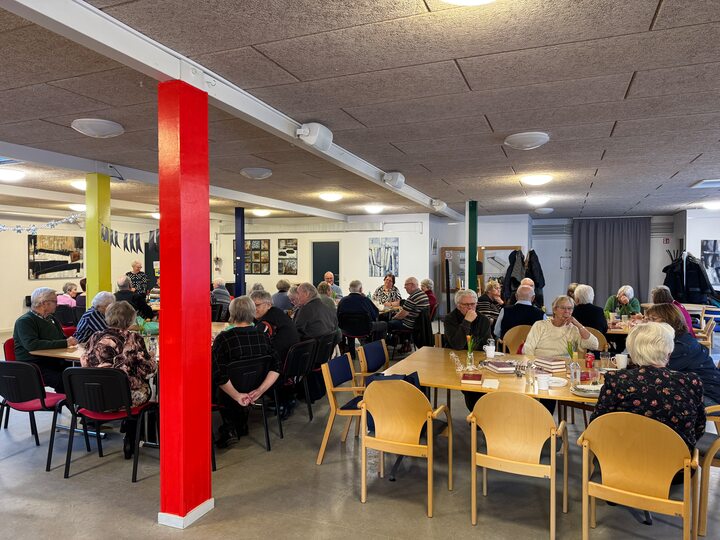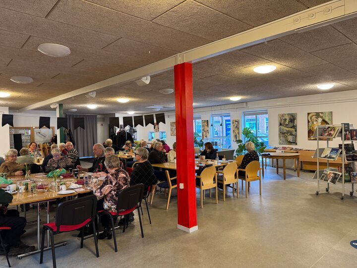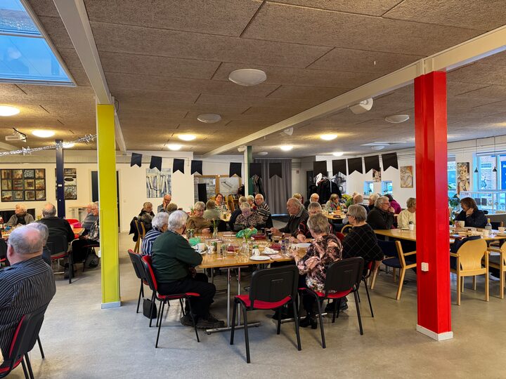 Den 11 Januar mødtes vi 58 glade medlemmer, til vores årlige Nytårsfrokost i Kulturhuset. Humøret var godt, og med tanke på den gode mad der ventede, blev der sunget godt igennem. Maden var en rigtig god buffet, i den sædvanlige gode Gitte kvalitet. Ved 15-tiden var vi mætte, kaffen serveret, og så sluttede vi af med at ønske hinanden et godt Nytår, med et glas champagne, og dertil 1 stk. hjemmelavet kransekage!