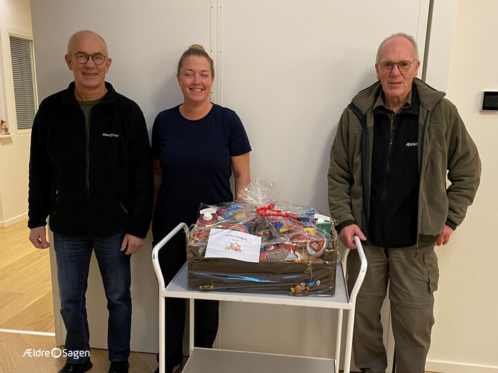 Anne-Marie og Helene fra Ældre Sagen Hinnerup var 2. december en tur rundt til Olivenlunden, Kirsebærlunden og Kløverlunden på Hinneruplund Plejecenter og afleverede de fyldt kurve med lækre julegodter i de enkelte fællesområder.