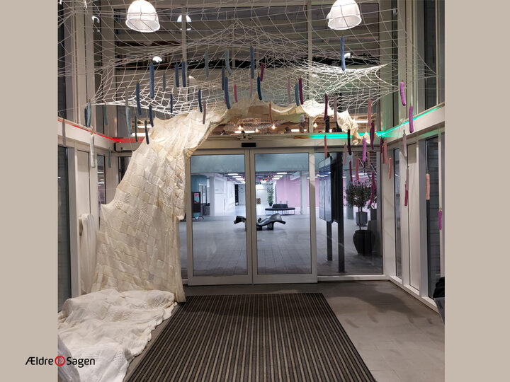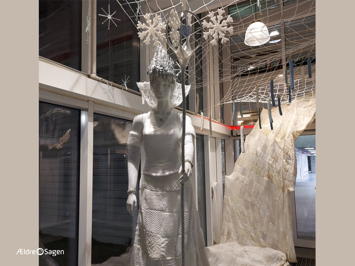 Ældre Sagens "strikkeklub" har været med til at strikke firkanter til Snedronningens kjole.