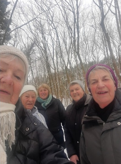 Den 11. februar 2026 var fem friske fruer på gåtur i det rekreative område, Skærven, i Løsning.