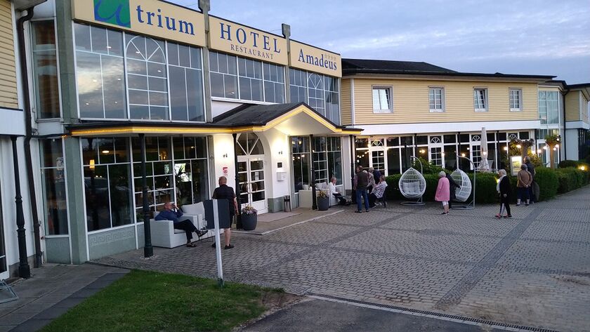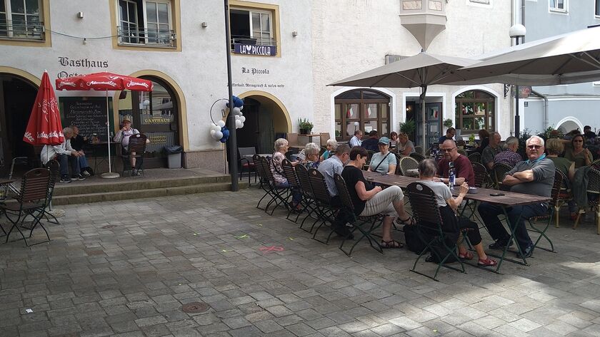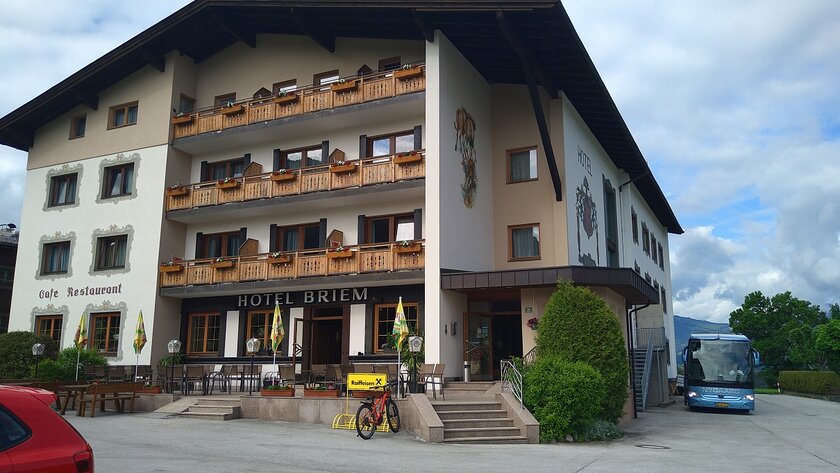 Havde vejret undervejs gennem Tyskland været noget ustabilt, så skinnede solen, da man passerede grænsen til Østrig, og den første aften på Hotel Briem nød man efter aftensmaden på terrassen foran hotellet.