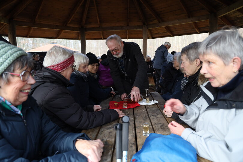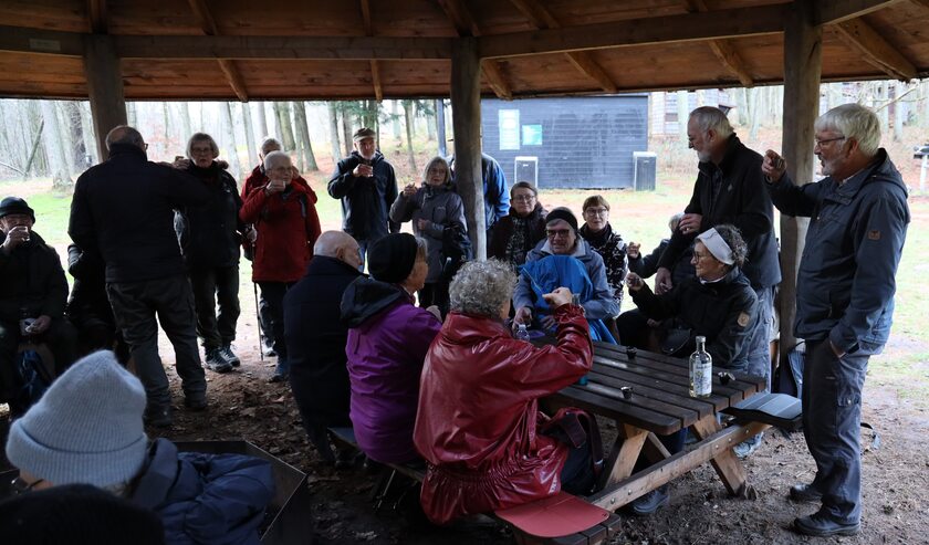 Årets sidste bjesk blev indtaget ved shelterpladsen i Junges Plantage, inden turen gik langs vandet til vandrehjemmet, hvor en dejlig julefrokost ventede på os.