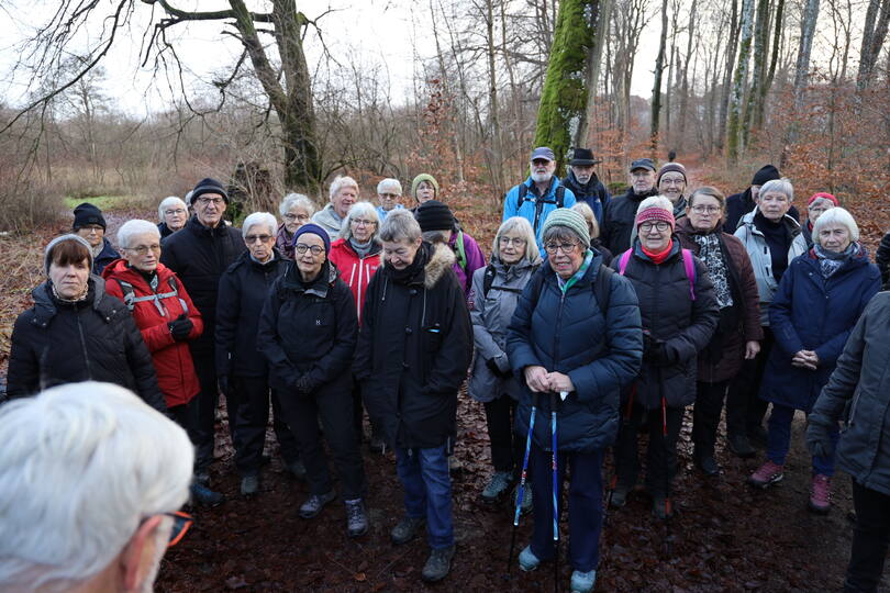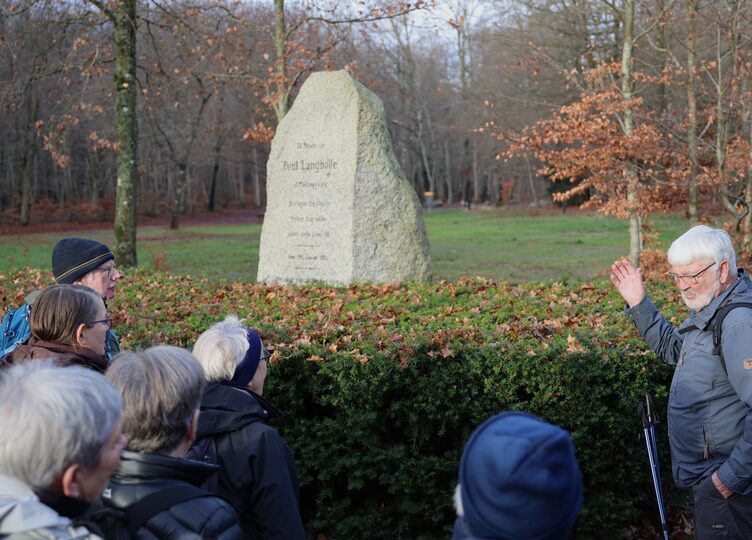 Alle deltagere mødtes ved Skanderborg Vandrehjem, og turen gik gennem skoven frem mod mindestenen for Poul Langballe og statuen til ære for arveprins Ferdinand.
