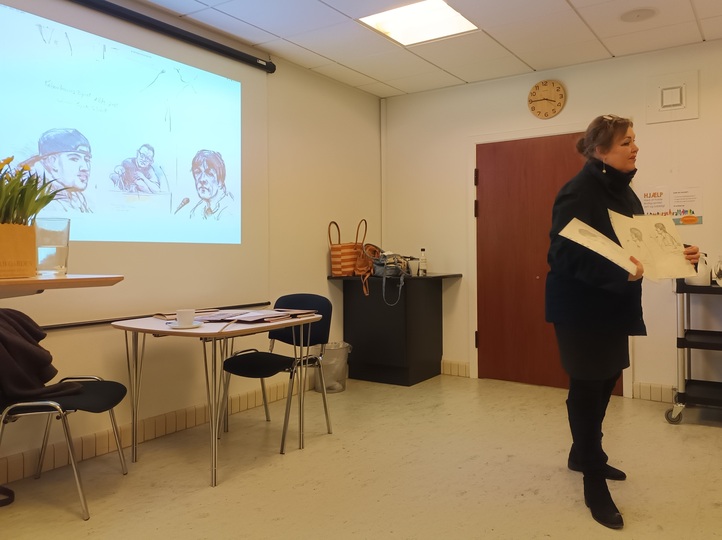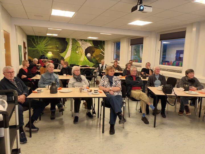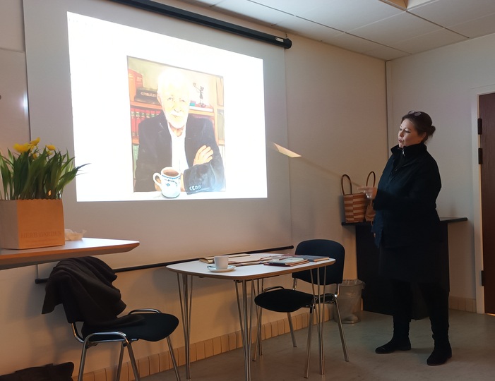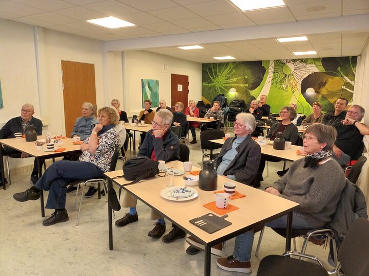 Den lokale billedkunstner Anne Gyrite Schütt gav 20 fremmødte medlemmer et spændende foredrag på et par timer om sit snart 50 års kunstneriske tegnearbejde, som også omfatter illustrationer, portrætteringer og malinger. I pausen blev serveret kaffe og kringle.