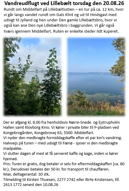Vandreudflugt ved Lillebælt torsdag den 20.08.26