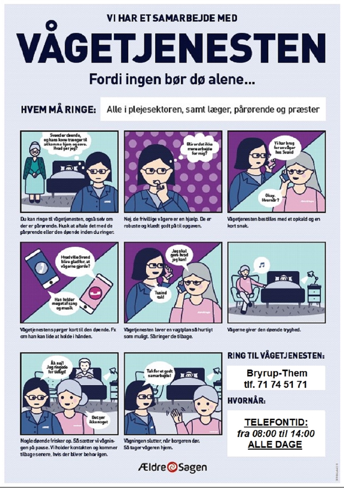 Hvert år dør flere tusind mennesker uden nogen ved deres side. Ældre Sagens vågetjenester arbejder for, at ingen skal dø alene, med mindre de selv ønsker det. De frivillige i vågetjenesten kommer både hos døende, som ingen pårørende har og hos døende, hvis pårørende trænger til et hvil.