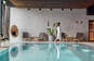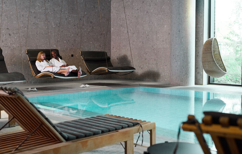 Det er wellness, der er helt nede på jorden - bare sænk skuldrene og vær dig selv. Fra en af de behagelige loungemøbler, med en blød badekåbe omkring dig, finder du hurtigt roen til lyden af sagte skvulp fra den store pool (12m x 5m). Nyd også deres fodbade, sauna og damp oplevelser.