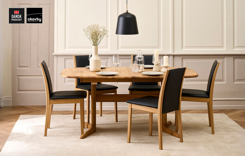 Skovby spisebord og spisebordsstole hos Møblér