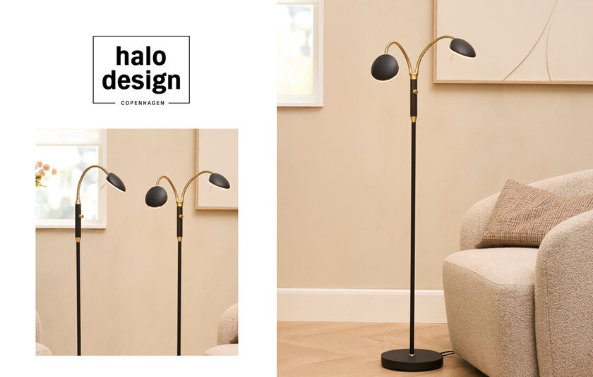 1.599 kr. Rabatten er fratrukket medlemsprisen. Vegas LED gulvlampe fra Halo i sort metal, med 2 fleksible og justerbare arm. Lysstyrken er regulérbar. Lampen er Inkl. LED lyskilde. Normalpris 1.899 kr. Spar 300 kr.