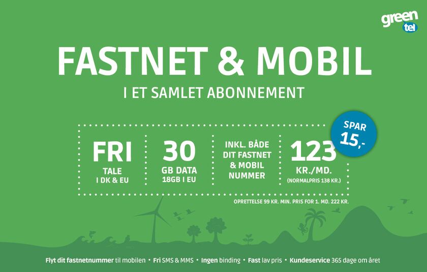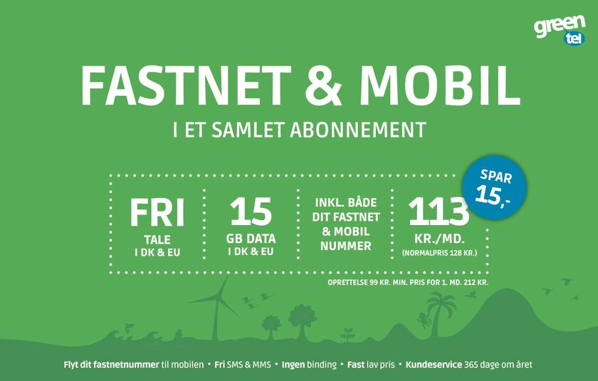 Spar op til 15 kr. hver måned ved at samle fastnet og mobil i samme abonnement.
