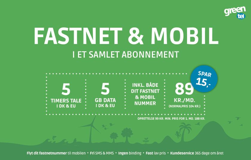 Få fastnet og mobil i et abonnement fra 89 kr./md.