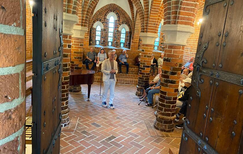 Udflugterne går i 2026 både øst- og vestpå. Vi besøger øen Årø, en lille perle i Lillebælt i udmundingen af Haderslev Fjord. Her tager vi på guidet ø-rundfart og ser nærmere på Årøs smukke natur og særegne kultur – og får os en frokost på det autentiske badehotel i Årøsund. Vi ser også nærmere på Vesteregnen, når vi besøger den idylliske Randerup Kirke, hvor salmedigteren H. A. Brorson voksede op og var præst, og videre langs vadehavskysten til den sceniske Trøjborg Slotsruin, hvor eftermiddagskaffen venter på Trøjborg Hovedgård.