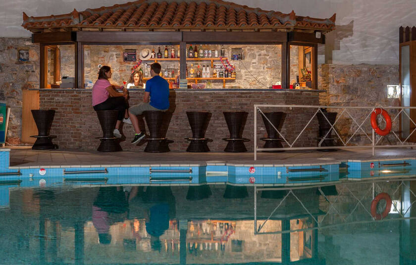 Poolområdet har en separat børnepool med solstole og parasoller. Pool-/snackbar. Gratis wifi på hele hotellet. Deponering i receptionen mod betaling. Elevator er kun tilgængelig i hovedbygningen. Niveauforskelle inden for hotellet. Afstanden til stranden (100 m) refererer til stenstranden ved havnen i Skopelos by. Stranden er en offentlig strand, og i starten og slutningen af sæsonen er der ingen solstole eller parasoller der. I højsæsonen er der nogle tavernaer, der tilbyder solstole og parasoller til deres besøgende. Der er flere fantastiske strande rundt om øen. Du kan komme til mange af dem med bus, eller endnu mere bekvemt, leje en bil. Der er ca. 4 km til sand- og stenstranden Stafilos.