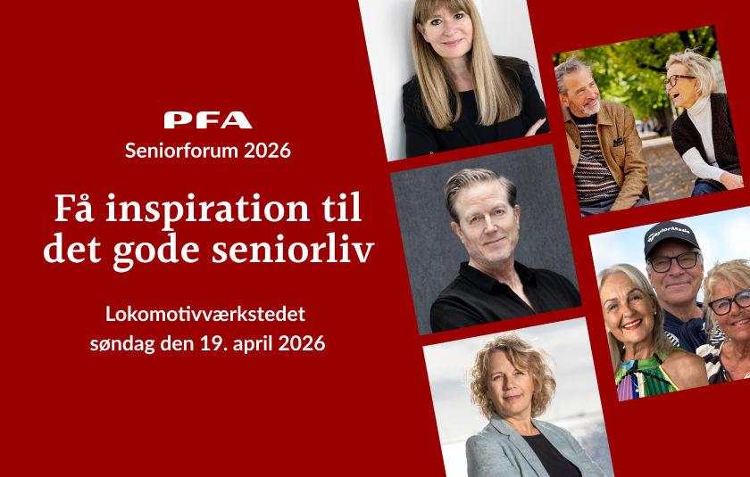 Brug en dag på resten af dit liv - to søndage i foråret slår PFA dørene op til PFA Seniorforum, der er en dag fyldt med inspiration til det gode seniorliv. Du kan opleve en masse spændende foredrag, som både giver dig noget at tænke over og grine af. Spar 30 kr. på din billet.