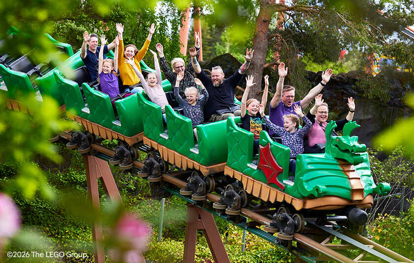 Ræs ind i magien i LEGOLAND, hvor der venter sug i maven, stjernestunder og fantasifuld LEGO leg i mere end 45 sjove forlystelser for hele familien.