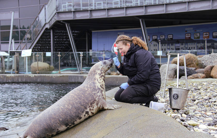Se udstillingen om havets fødekæde fra de mindste organismer til de største rovdyr, og forstå hvordan selv små ubalancer kan få konsekvenser for dyr og mennesker. Udenfor og i undervandstunnelen kan du se de nysgerrige sæler svømme elegant og hurtigt omkring. Du kan også opleve, når de bliver fodret og trænet to gange dagligt.