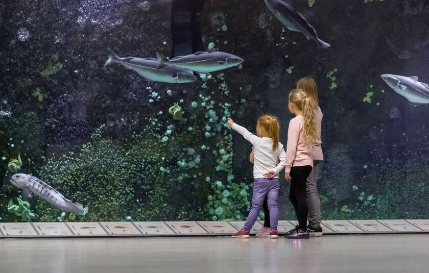 Du kan opleve de største dyr i Nordsøen digitalt i ”Big Ocean Window”. Her kan du prøve at være en lille makrel, mens tun og spækhuggere jagter føde omkring dig. Kan du undgå at blive spist?