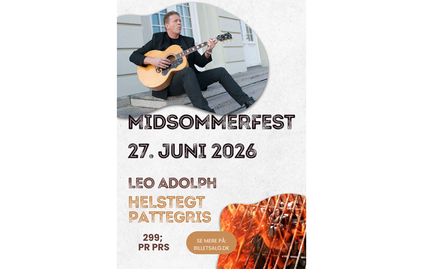 - 27. juni kl 18.00 - Midsommerfest med helstegt pattegris og live musik