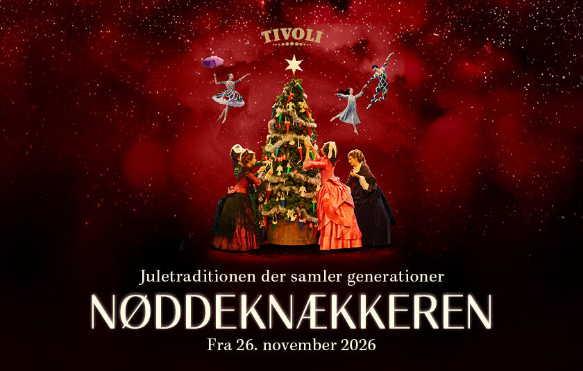 Julestemningen svæver ind i Tivolis Koncertsal, når det hjertevarme juleeventyr vender tilbage i julen 2026. Julehistorien om Nøddeknækkeren er en sand klassiker, der emmer af eventyr og magi for store og små.